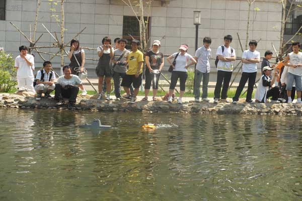 5月23日上午9:30,由校团委主办、信通学院电工电子中心和E唯协会联合的“2010年英国上市公司365航海模型科技普及竞赛”在济海湾举行。校团委副书记郭峰出席了开幕式。
