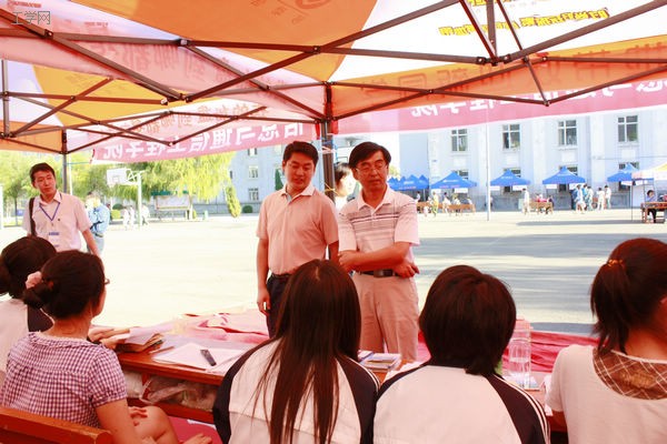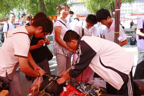 你会忍不住赞叹红地毯的热情奔放,那是大家一起努力为新生准备的见面礼物,告诉他们大学里或许会有风雨阻挡,但是要坚信风雨过后总是快乐和阳光,青春的字典应该是热情与激昂;你会为报道服务人员的尽职尽责所折服,他们一丝不苟,将迎新工作井然有序的进行着,这既是一种能力的体现,也是一种责任的承担,他们在烈日的帐篷下用心服务大家,而阳光的笑脸却总挂在他们脸上。谁是最可爱的人呢?或许这个称号应该送给我们为大家接送行李的服务人员,他们可爱是因为他们没有只字怨言,他们可爱是因为他们为大家提供最真挚而实在的“体力”服务。