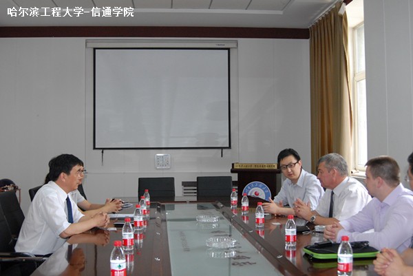 院长刁鸣,副院长窦铮,国强,郭立民,黄丽莲,项建弘参加了座谈,刁鸣与SHULGA SERGEY分别介绍了本学院的历史发展,以及目前人才培养、科学研究和国际交流等工作的开展情况,对两校院系在教育,科研等相关领域的合作进行了进一步的探讨。