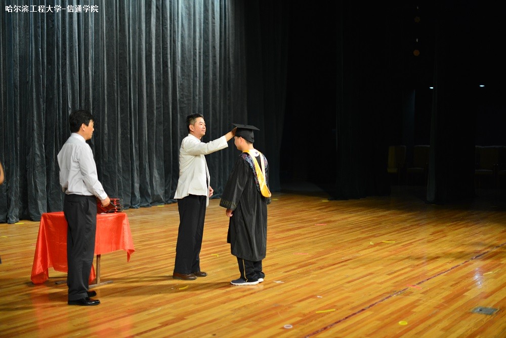 晚会最后,杨冶副校长宣读本科生毕业相关事宜,同时寄语学生们扬长避短,铭记工程校训,“无论混得怎么样,都要回来看看,哈工程是大家永远的家!”随即,杨冶副校长与刁鸣院长颁发毕业证书并行拨穗礼,至此,信通学院2014届本科生毕业典礼结束。