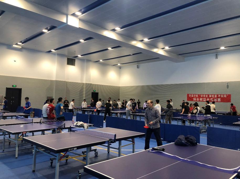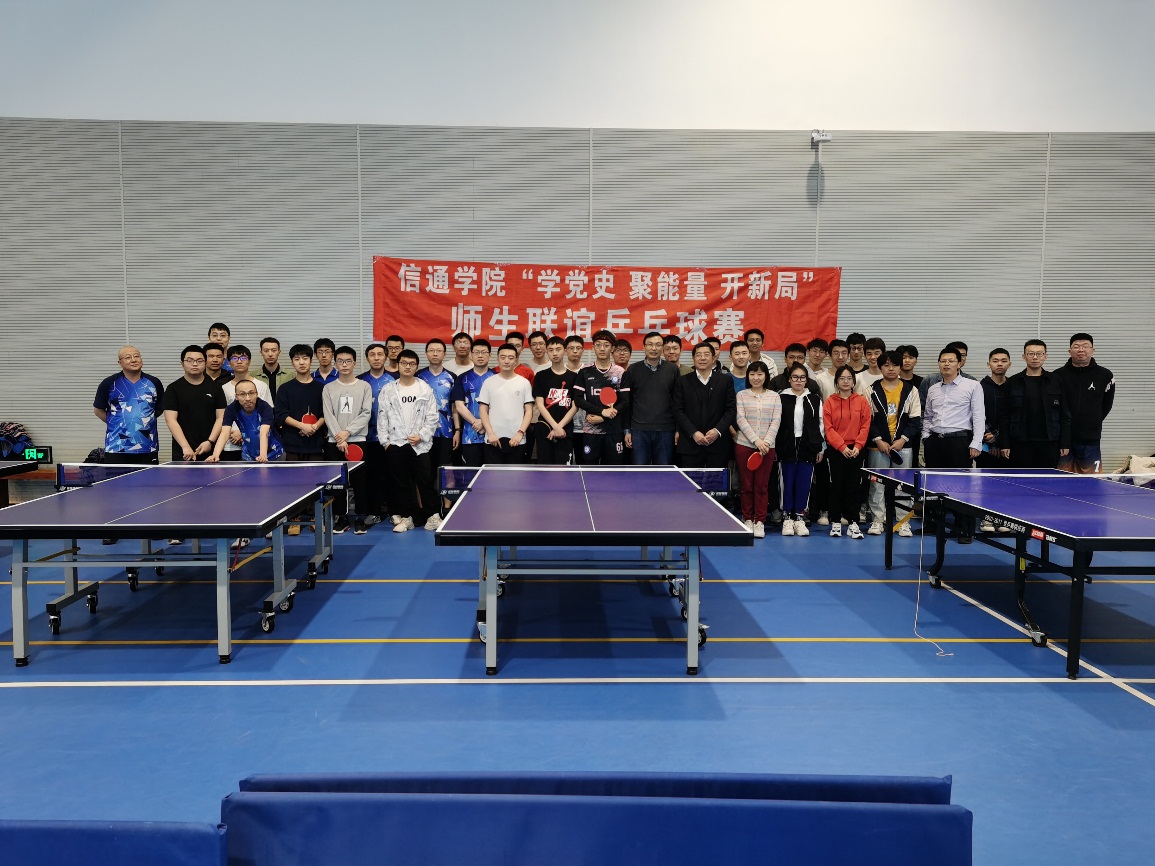 为庆祝中国共产党成立100周年,展现信通学院师生朝气蓬勃的精神风貌,丰富校园生活,增进师生之间的沟通交流,信通学院于4月18日在校体育馆举办“学党史 聚能量 开新局”师生联谊乒乓球赛。比赛由信通学院主办,学院工会、学院学生会承办。院长陈万海、党委书记王晓亮、党委副书记孙安斗、综合办主任赵宇宁、学工办主任王琦出席开幕式,党委书记王晓亮宣布比赛开始。