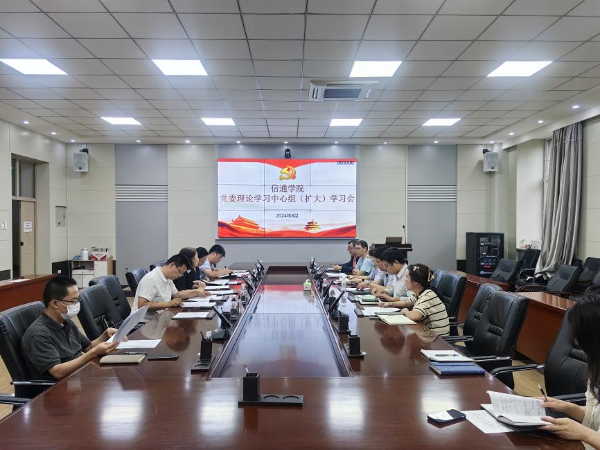8月22日下午,信通学院召开党委理论学习中心组(扩大)会议,集体学习党的二十届三中全会精神,传达学习学校暑期务虚会议精神,研究讨论学院下学期重点工作。