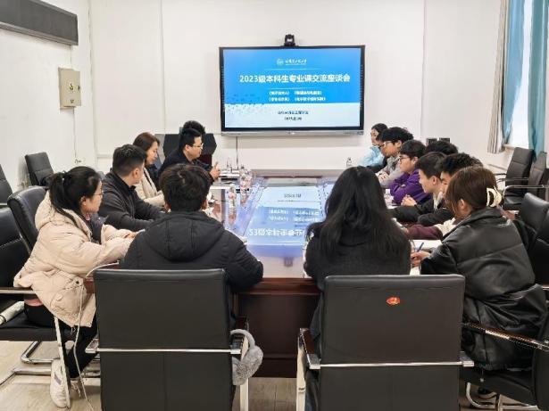 本次会议的目的是充分了解学生在专业课学习中的困难,为破解专业课挂科率偏高问题找准发力点。学生就本学期开设的课程展开讨论,针对“课程设置优化”“教师授课方式”“课堂纪律”“学业帮扶机制”等方面提出意见和建议。