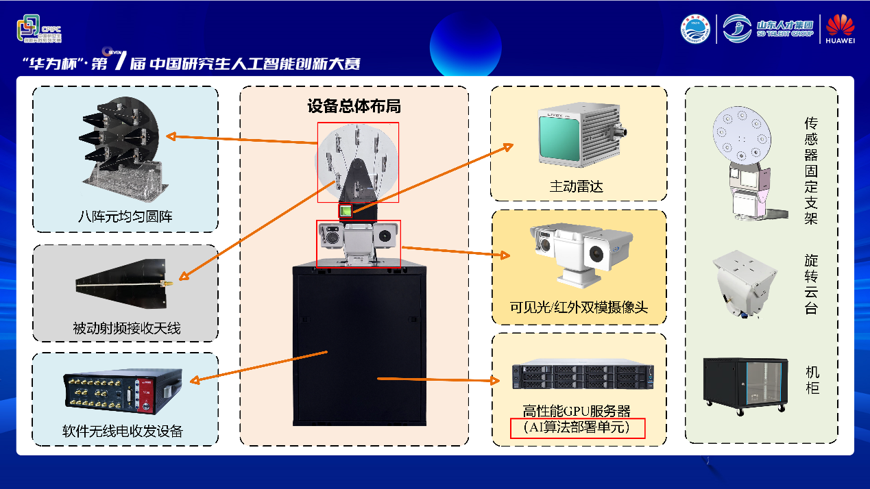 作品简介:面向低空空域安全监管的需求,本团队设计了一款多模态智能融合驱动的低空反无人机安防系统。作品创新性引入无人机被动射频模态,基于AI算法解决多模态特征对齐与融合困难的挑战,构建并发布首个集成可见光/红外视觉、主动雷达与被动射频信号的多模态低空反无人机数据集,促进多模态低空反无人机技术的研究,为低空空域安全监管体系提供了有力的技术支撑。
